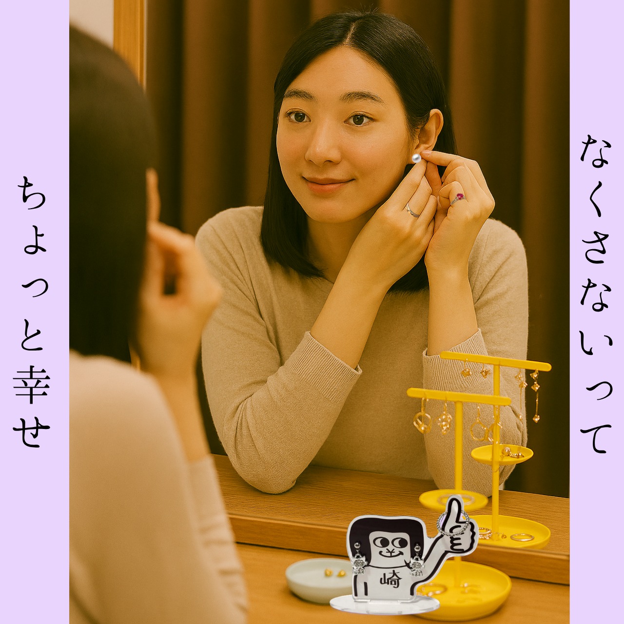 愛知県岡崎市のご当地キャラクター「オカザえもん」の可愛らしいジュエリースタンドです。